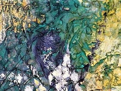 “Memory and time continue to be a major theme in my work. I am constantly inspired by the idea of layering and documenting time and action through my use of materials. When I began working with beeswax, I discovered the potential of each layer applied to make its own permanent marking, indelibly recording the movement of material across the surface of the canvas. Now, I have begun to use fine tools to write into the surface; my subjects are often inspired by historical works in literature and also my own writing. Written across the canvas, the finely scrawled passages appear through my richly painted surface. My goal is that viewing my work in person brings an aesthetic moment when hidden writings, layered textures, and dense colors coalesce to make truly beautiful, unimaginable things happen.”